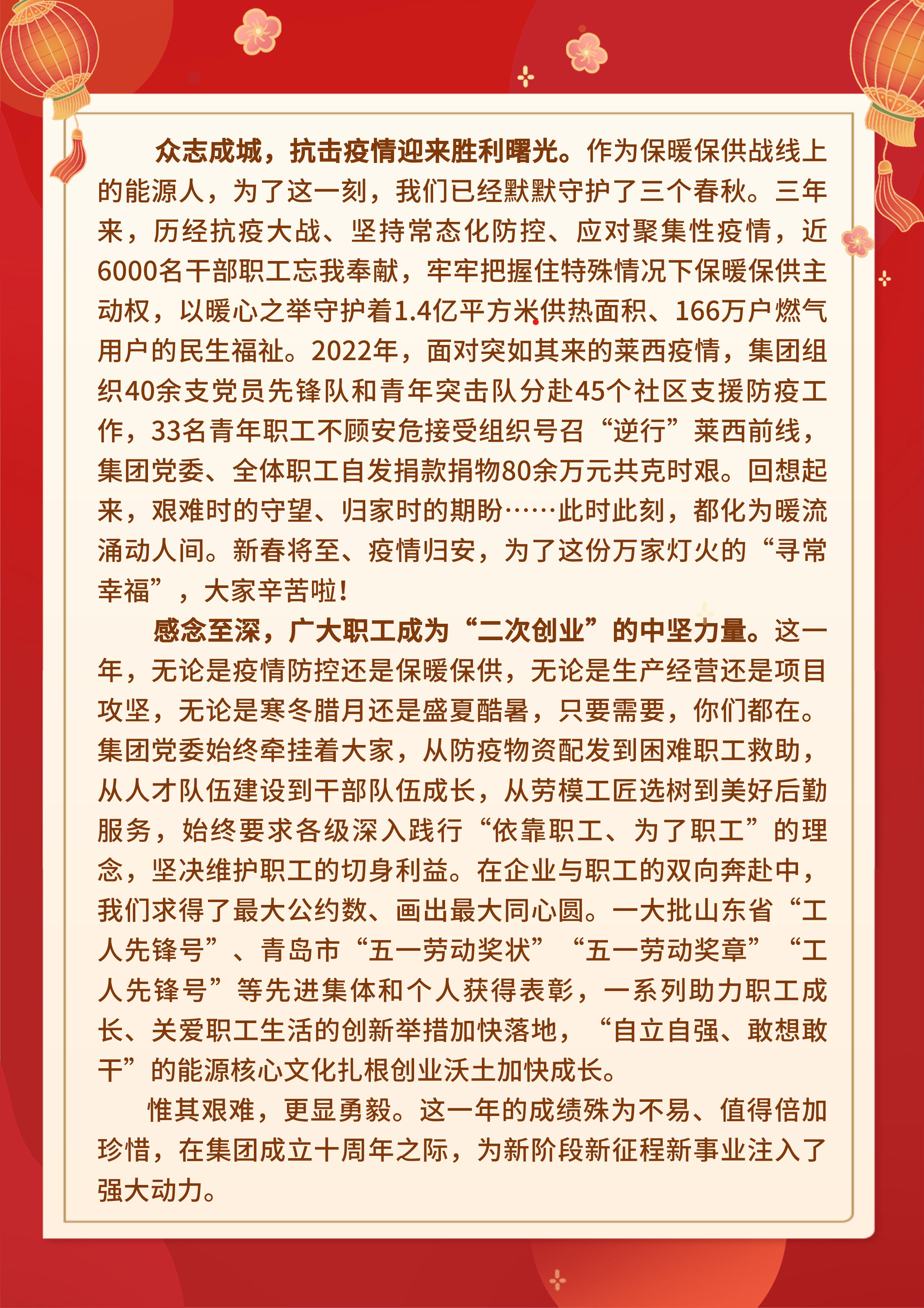下一篇:团结一心 创新突破 在新征程上奋勇前进——青岛能源集团召开第三届一次工会会员代表大会、职工代表大会、2022年度表彰大会、2023年工作会议、2023年党建暨党风廉政建设工作会