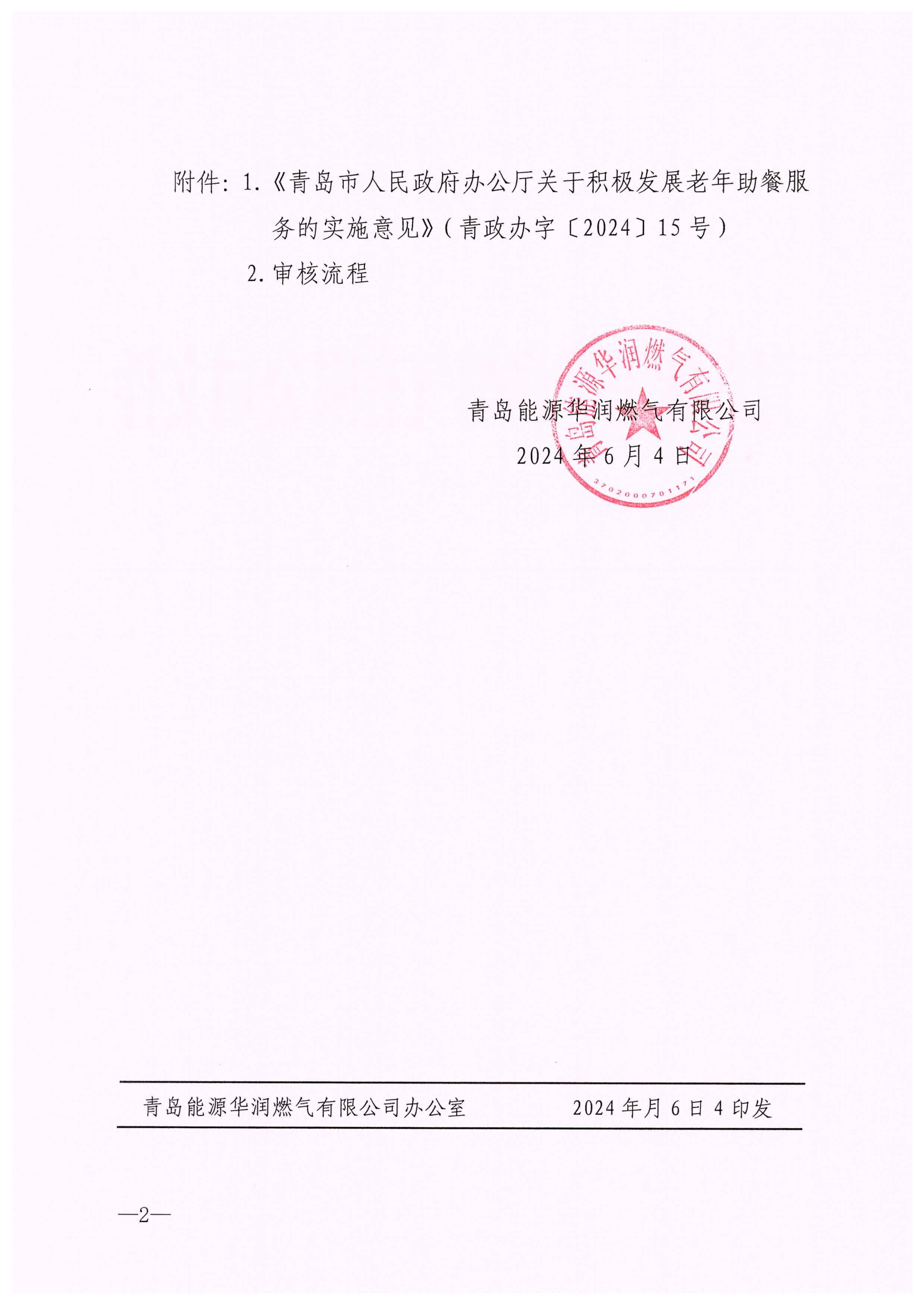 青能华燃〔2024〕26号 青岛能源华润燃气有限公司关于执行《青岛市人民政府办公厅关于积极发展老年助餐服务的实施意见》的通知.pdf