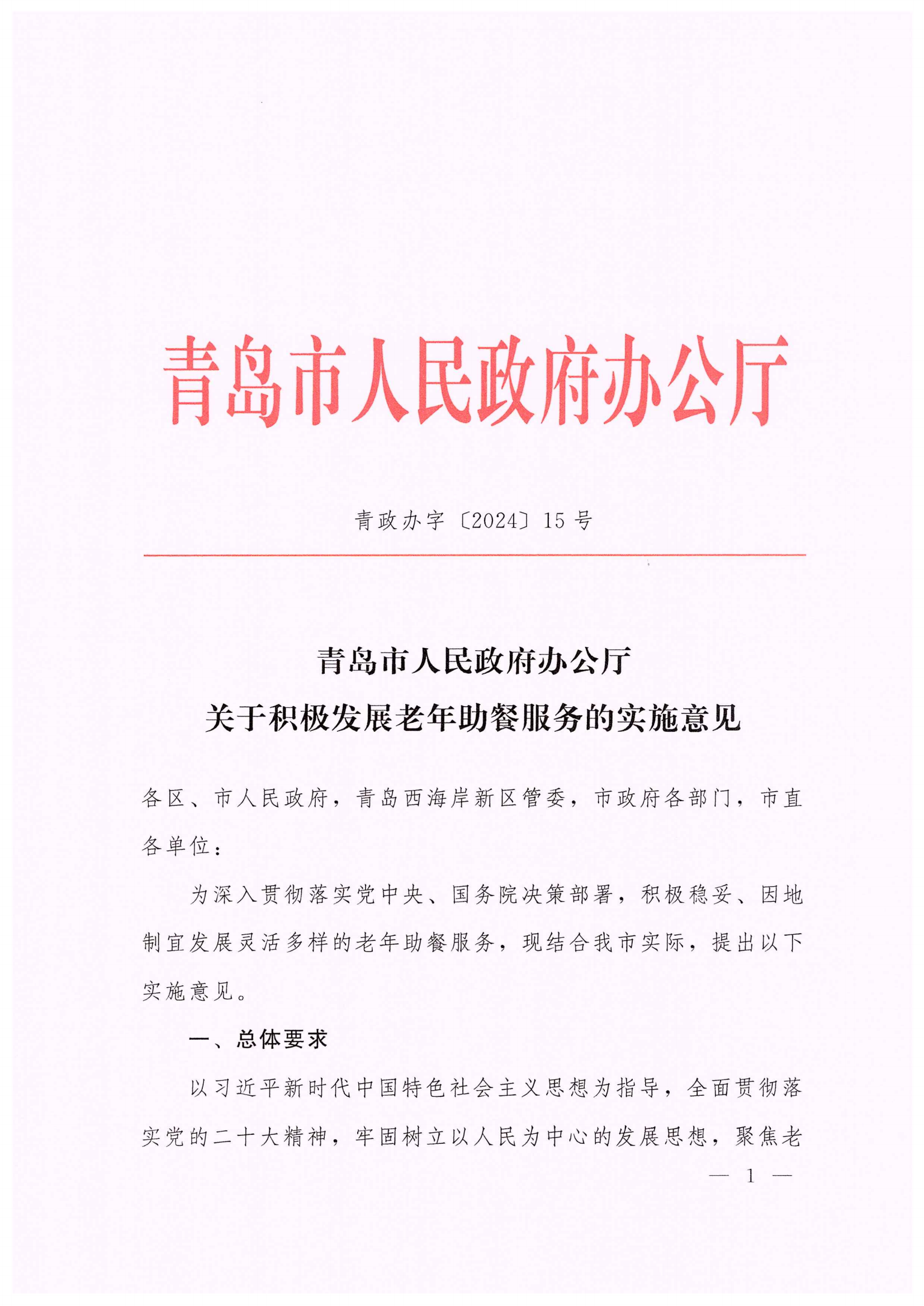 附件1:青政办字[2024]15号《青岛市人民政府办公厅关于积极发展老年助餐服务的实施意见》.pdf